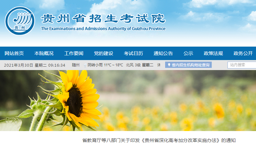 從貴州省招生考試院了解到,省教育廳等八部門關(guān)于印發(fā)《貴州省深化高考加分改革實(shí)施辦法》的通知已經(jīng)發(fā)布,為方便考生了解情況?,F(xiàn)將有關(guān)事宜通知如下: