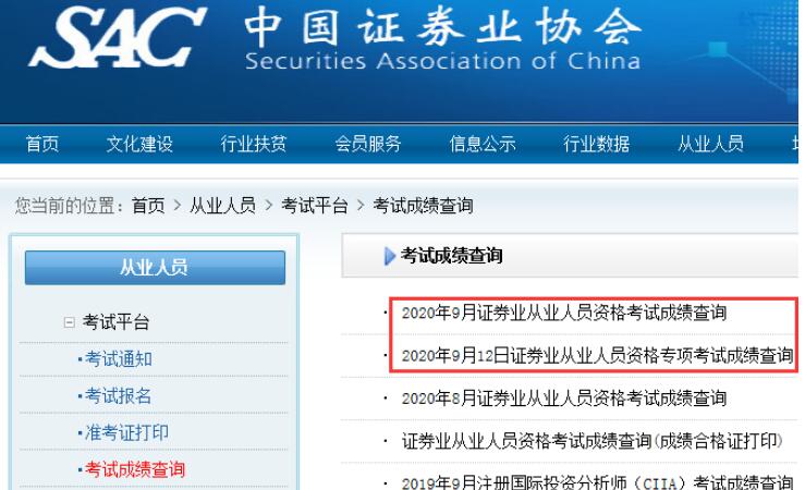 遼寧2020年9月證券從業(yè)資格成績查詢?nèi)肟冢褐袊C券業(yè)協(xié)會(huì)【已開通】