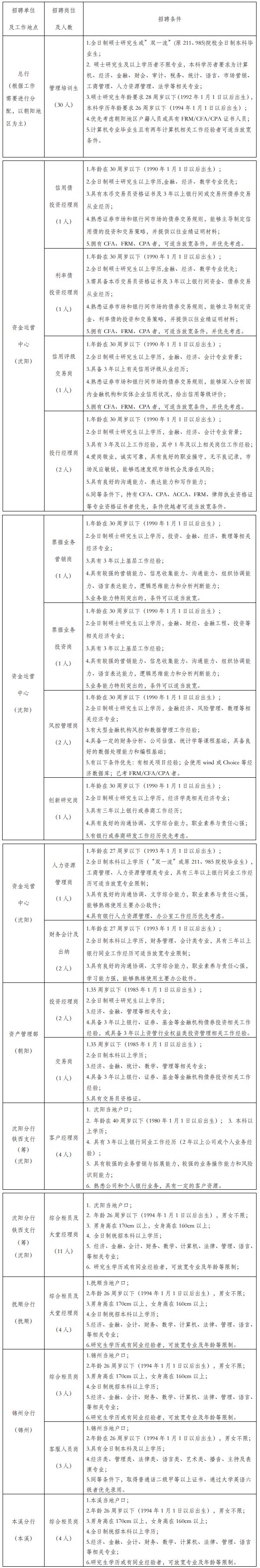 2020遼寧朝陽銀行社會(huì)招聘若干人,報(bào)名時(shí)間:2020年9月25日截止,現(xiàn)將招聘公告原文發(fā)布如下: