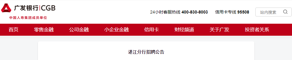 2021廣發(fā)銀行廣東湛江分行招聘公告已發(fā)布,報(bào)名時(shí)間:2021年6月30日截止,現(xiàn)將招聘公告原文發(fā)布如下: