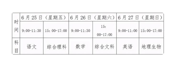 中考頻道從貴州省教育廳獲悉,2021年貴州中考時(shí)間及科目已公布,6月25日至27日舉行考試,具體考試時(shí)間安排如下: