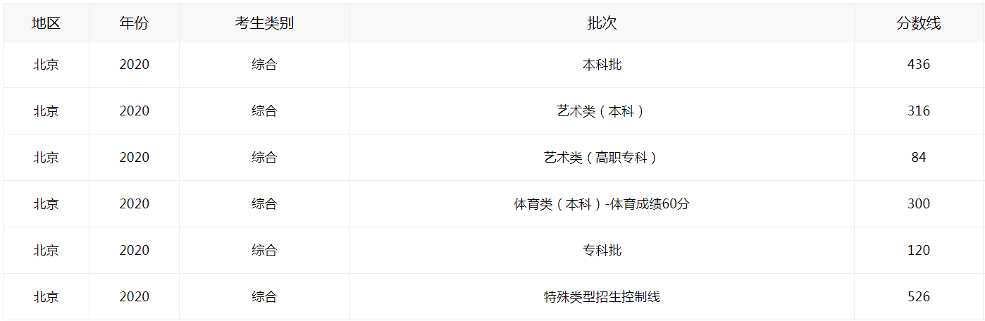 2020年北京各批次的錄取分?jǐn)?shù)線