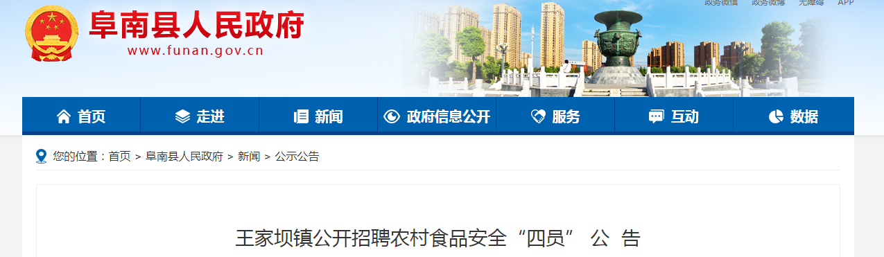 2021安徽省阜陽王家壩鎮(zhèn)招聘農(nóng)村食品安全“四員”公告已發(fā)布,報名時間:即日起截止到6月29日下午5時。為您整理了招聘條件和報名流程,供您參考。