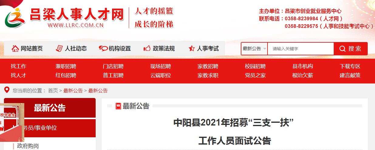 中陽縣2021年“三支一扶”人員招募考試面試工作定于6月29日進行,現(xiàn)將有關事項公告如下: