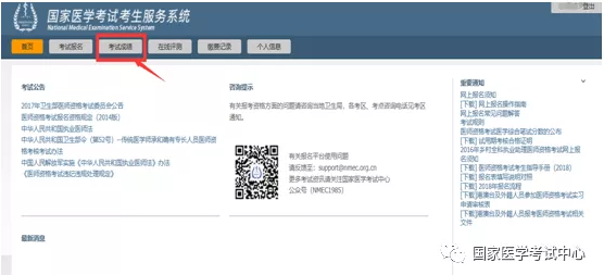 考生登錄國家醫(yī)學(xué)考試考生服務(wù)系統(tǒng)后,點擊考試成績菜單即可。