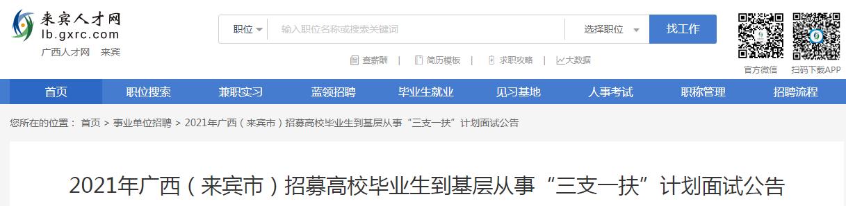 根據(jù)2021年廣西“三支一扶”計(jì)劃招募工作總體安排,現(xiàn)就本市2021年招募高校畢業(yè)生到基層從事“三支一扶”計(jì)劃面試有關(guān)事項(xiàng)公告如下: