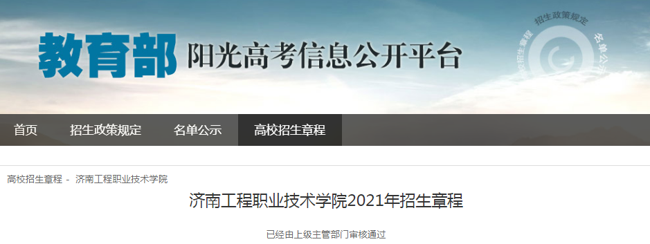 從教育部陽光高考信息公開平臺獲悉,濟南工程職業(yè)技術(shù)學(xué)院2021年招生章程已公布,具體詳情如下: