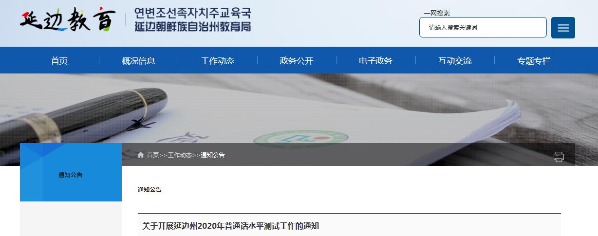 延邊州2020年普通話水平測試工作將于11月初進(jìn)行?,F(xiàn)將有關(guān)事宜通知如下: