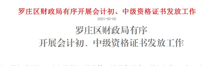 根據(jù)《臨沂市財(cái)政局關(guān)于做好會(huì)計(jì)初、中級(jí)資格證書發(fā)放及補(bǔ)發(fā)有關(guān)事項(xiàng)的通知》要求,我區(qū)有序開展會(huì)計(jì)初、中級(jí)資格證書發(fā)放工作。