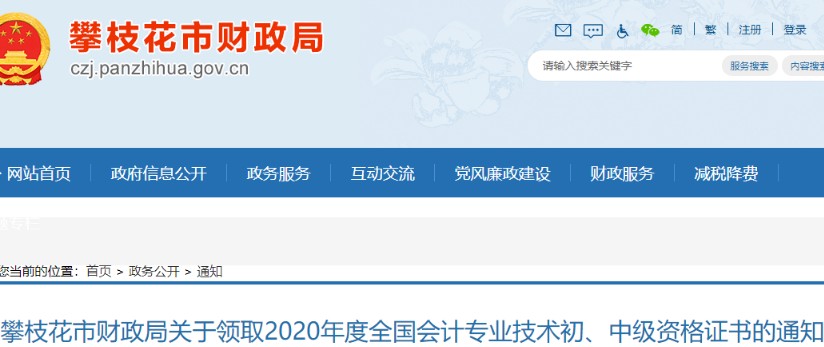 現(xiàn)就攀枝花考區(qū)2020年度會計專業(yè)技術(shù)初級、中級資格證書領取有關事項通知如下: