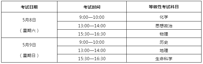 等級(jí)性考試科目和時(shí)間安排: