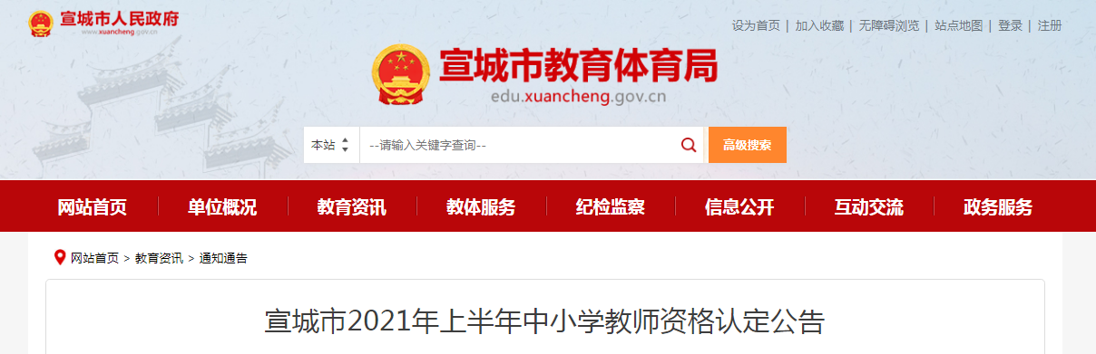 從宣城市教育體育局獲悉,2021年上半年安徽宣城市中小學(xué)教師資格認(rèn)定公告已公布,4月12日開始報名,具體詳情如下: