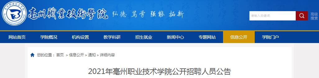 【點(diǎn)擊進(jìn)入:2021安徽亳州職業(yè)技術(shù)學(xué)院招聘報(bào)名入口】