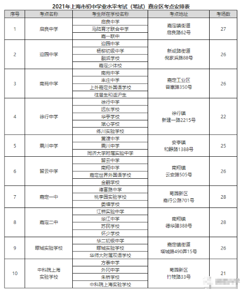 2021年上海市嘉定區(qū)中考考點(diǎn)安排公布