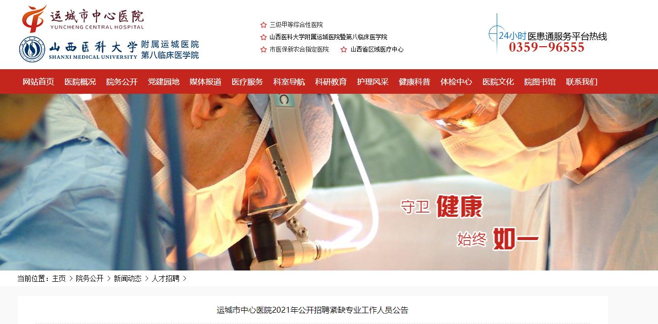 2021山西運(yùn)城市中心醫(yī)院招聘緊缺專業(yè)人員21人,報(bào)名時(shí)間:2021年8月12日—2021年8月19日,現(xiàn)將招聘公告原文發(fā)布如下: