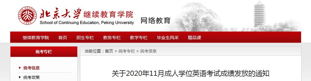從北京大學(xué)繼續(xù)教育學(xué)院獲悉,2020年11月北京大學(xué)繼續(xù)教育學(xué)院成人學(xué)位英語考試成績發(fā)放的通知已公布,請相關(guān)人員仔細(xì)閱讀,具體詳情如下: