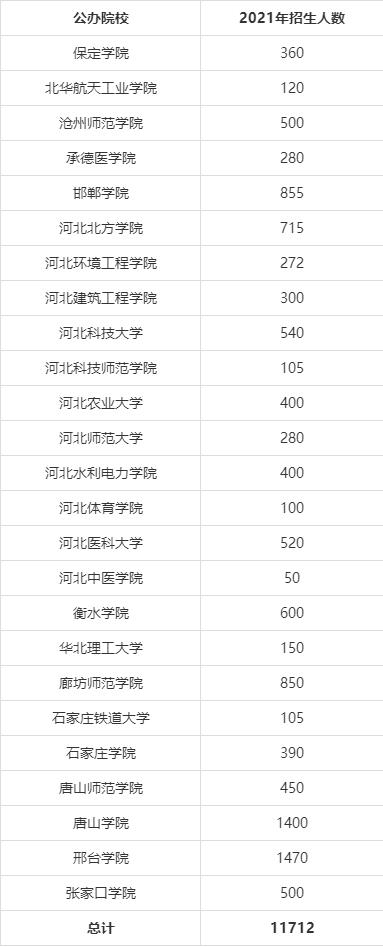 2021年河北專接本各類院校招生人數(shù)