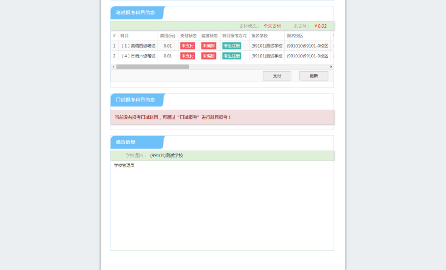 在頁(yè)面下方查看筆試及口試科目信息,無(wú)誤后點(diǎn)擊“支付”: