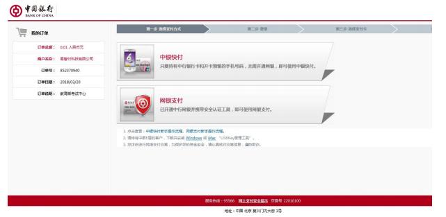 23、頁(yè)面跳轉(zhuǎn)至支付平臺(tái),選擇支付方式: