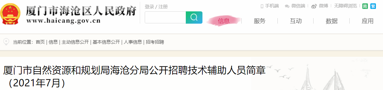(三)與招考工作有關(guān)的信息,將及時在海滄區(qū)政府網(wǎng)站(www.haicang.gov.cn)發(fā)布,請報考人員及時關(guān)注,不另行通知。
