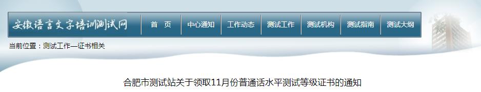 從安徽語言文字培訓(xùn)測試網(wǎng)獲悉,2020年11月安徽合肥市普通話水平測試等級證書領(lǐng)取通知已公布,證書領(lǐng)取時間為12月21日-25日,具體詳情如下:
