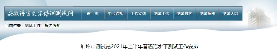 廣大考生,現(xiàn)將蚌埠市測(cè)試站2021年上半年普通話水平測(cè)試報(bào)名工作的有關(guān)事項(xiàng)公告如下:
