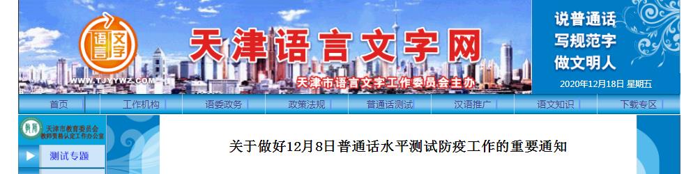 從天津語言文字網(wǎng)獲悉,2020年12月天津普通話水平測試防疫工作的重要通知已公布,請相關(guān)人員仔細(xì)閱讀,具體詳情如下: