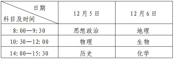 1.2020年黑龍江伊春普通高中會考時間安排在12月5日至12月6日,黑龍江省統(tǒng)一考試科目為思想政治、歷史、地理、物理、化學(xué)和生物,各科目的具體考試時間安排如下:
