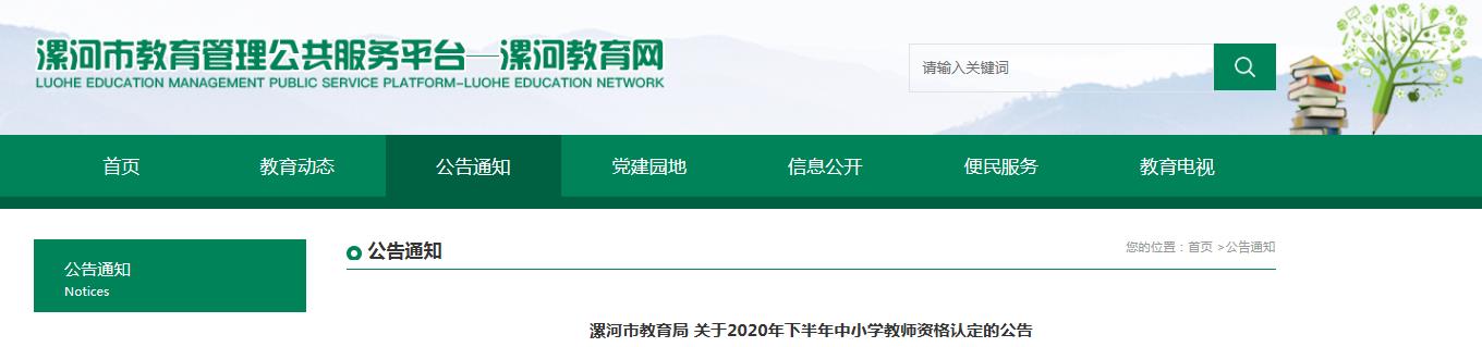 從漯河市教育局獲悉,2020年下半年河南漯河市中小學(xué)教師資格認定的公告已公布,報名時間為9月25日-10月15日,具體詳情如下: