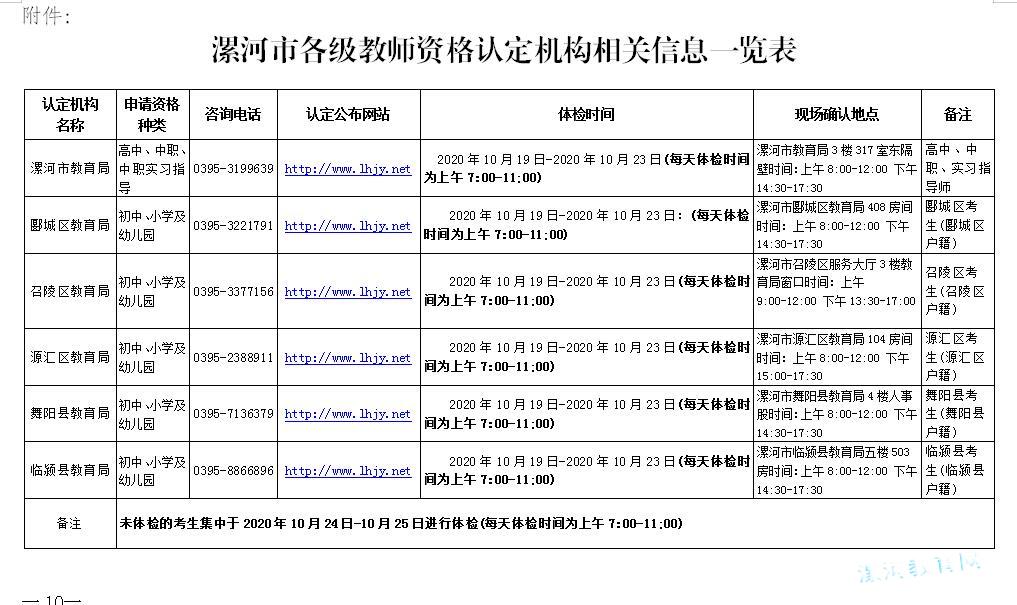 附件:漯河市各級教師資格認定機構(gòu)相關(guān)信息一覽表