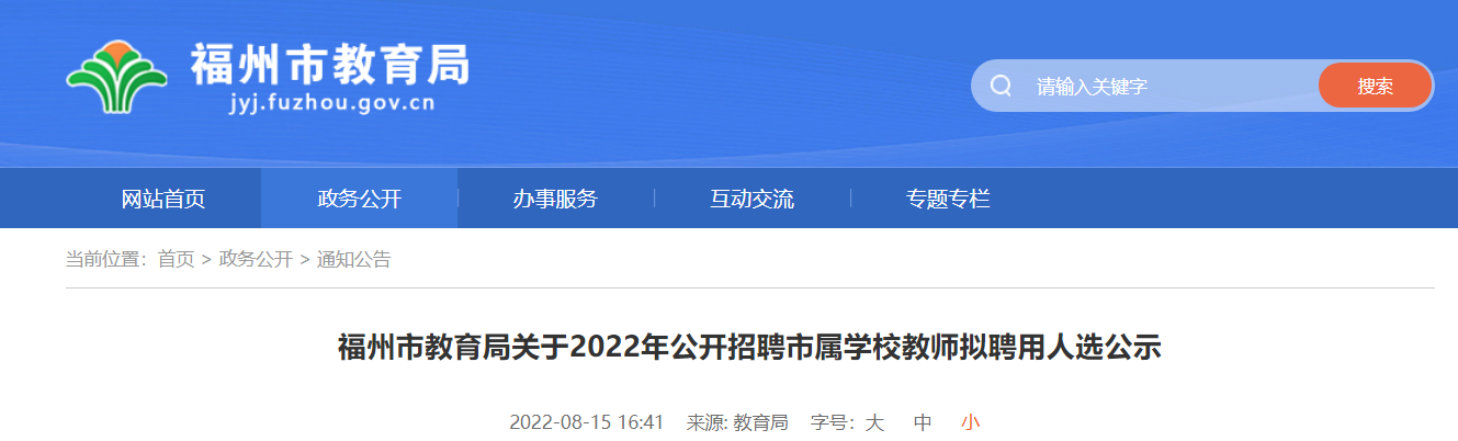 2022年福建福州市教育局公開招聘市屬學(xué)校教師擬聘用人選公示已發(fā)布,公示時(shí)間為2022年8月15日至2022年8月23日?,F(xiàn)將原文發(fā)布如下: