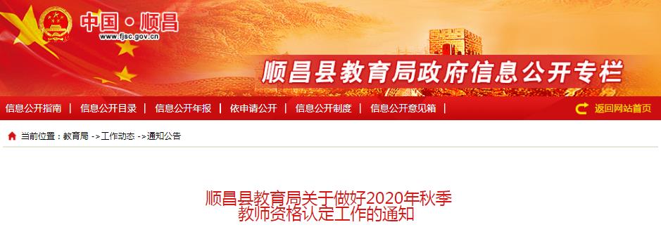 從順昌縣人民政府獲悉,2020年秋季福建南平順昌縣教師資格認定工作的通知已公布,報名時間為11月2日-11月13日,具體詳情如下: