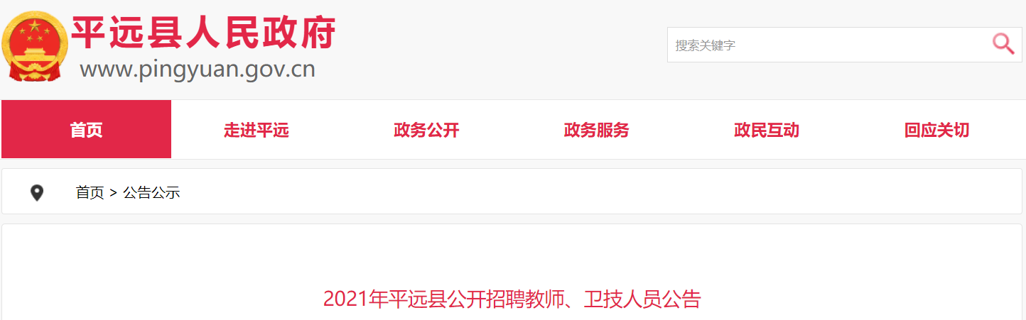筆試結(jié)束后20個工作日內(nèi)將在平遠(yuǎn)縣人民政府網(wǎng)站(http://www.pingyuan.gov.cn/)公布參加面試人員名單。具體面試時間、地點等事項另行發(fā)布公告,請報考人員密切關(guān)注相關(guān)信息。