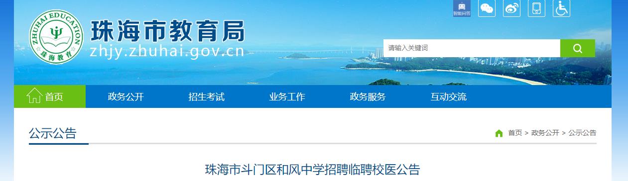 2021廣東珠海市斗門區(qū)和風(fēng)中學(xué)招聘臨聘校醫(yī)2人,報名時間:2021年8月25日截止,現(xiàn)將招聘公告原文發(fā)布如下: