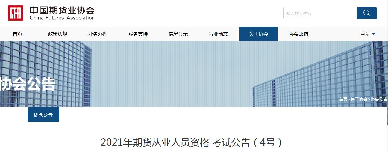 從中國期貨業(yè)協(xié)會(huì)發(fā)布的“2021年期貨從業(yè)人員資格考試公告(4號(hào))”得知,2021年7月期貨從業(yè)資格考試報(bào)名入口于2021年6月10日截止,考生可登錄中國期貨業(yè)協(xié)會(huì)網(wǎng)站“資格考試/考試報(bào)名”欄目,按照系統(tǒng)操作要求報(bào)名,詳細(xì)內(nèi)容如下: