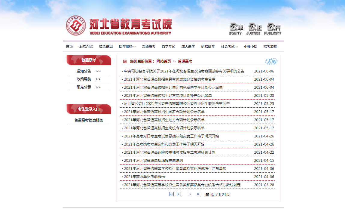 2021年河北高考結(jié)束后,為方便河北考生能及時(shí)查詢到2021年高考成績,高考頻道特別整理了河北高考成績查詢系統(tǒng)入口-河北省教育考試院,考生可在成績公布時(shí)可直接點(diǎn)擊下面的鏈接進(jìn)入查詢頁面進(jìn)行查分,祝愿所有的考生都能考出理想的成績,進(jìn)入自己理想的大學(xué)!
