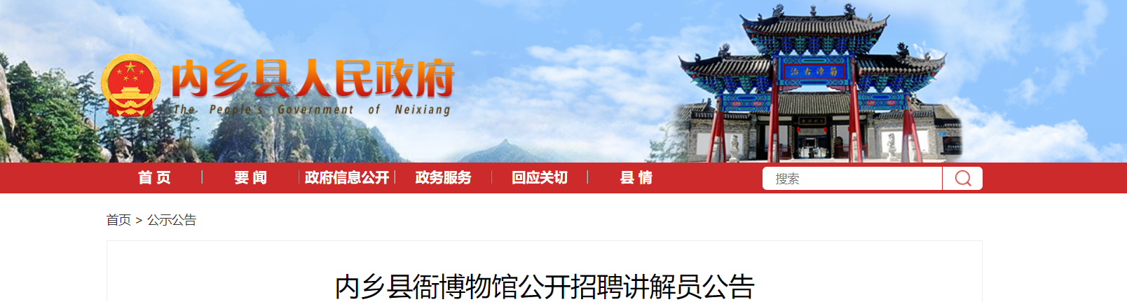 2021年6月10日由勞務派遣有限公司和內鄉(xiāng)縣衙博物館發(fā)布招聘信息。