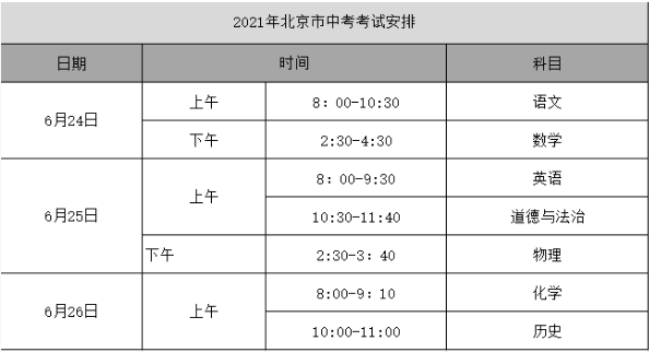 答:2021北京西城中考時(shí)間:6月24日-26日