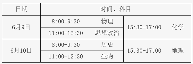 北京密云2021年普通高中學業(yè)水平等級性考試時間安排在2021年6月9日-6月10日期間舉行,具體時間及科目安排如下表: