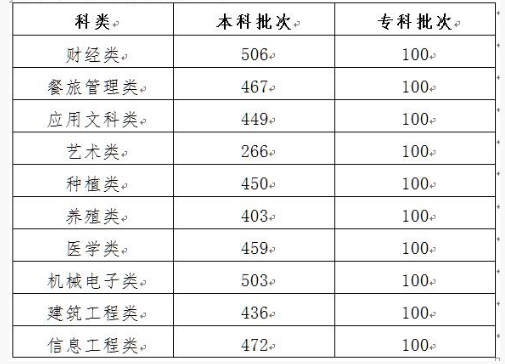 (2)2021年吉林省普通高校對口招生統(tǒng)一考試各科類、批次錄取最低控制分數(shù)線見下表: