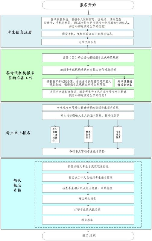 各市在報名工作開始前,要確保各報名點(diǎn)配置好身份證閱讀器和指紋采集設(shè)備,認(rèn)真組織系統(tǒng)測試和操作培訓(xùn),確保報名工作順利實施。報名準(zhǔn)備工作、程序及注意事項(含指紋采集流程)詳見附件5。