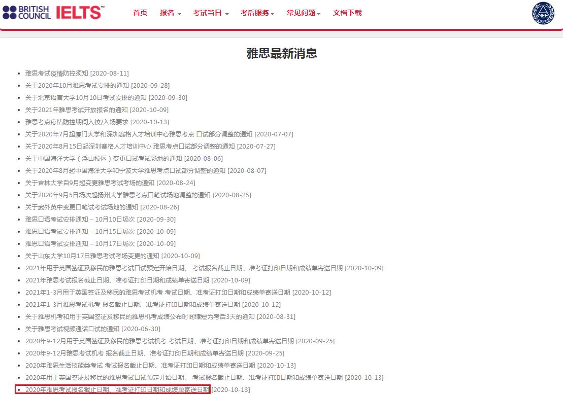 從教育部考試中心雅思考試報名網(wǎng)獲悉,2020年雅思考試報名截止日期、準考證打印日期和成績單寄送日期已公布,請相關(guān)人員仔細閱讀,具體詳情如下: