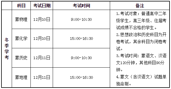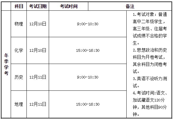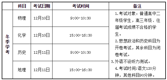 2020年冬季甘肅臨夏普通高中學(xué)業(yè)水平考試時(shí)間安排在12月10日-12月11日期間。