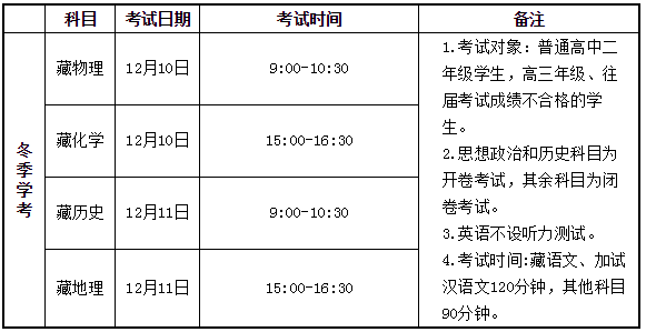 2020年冬季甘肅臨夏普通高中學(xué)業(yè)水平考試科目為物理、化學(xué)、歷史、地理;藏物理(翻譯卷)、藏化學(xué)(翻譯卷)、藏歷史(翻譯卷)、藏地理(翻譯卷)。