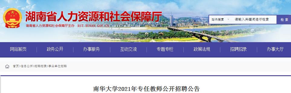 招聘信息通過湖南省人力資源和社會保障廳(http://rst.hunan.gov.cn/)、南華大學人力資源處網站(http://rsc.usc.edu.cn/rczp/rczp2.htm)面向社會公開發(fā)布。