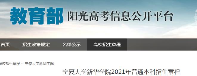 從教育部陽光高考信息公開平臺獲悉,寧夏大學新華學院2021年普通本科招生章程已公布,具體詳情如下: