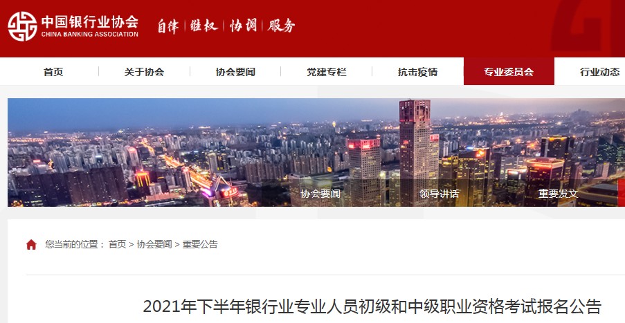 2021年下半年甘肅中級銀行從業(yè)資格免考申請入口:中國銀行業(yè)協(xié)會