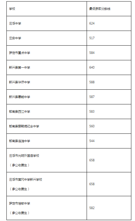 從云浮市教育局了解到,2021年廣東云浮普通高中招生錄取分?jǐn)?shù)線已公布 ,為方便考生了解情況,現(xiàn)將高中招生錄取分?jǐn)?shù)線整理如下: