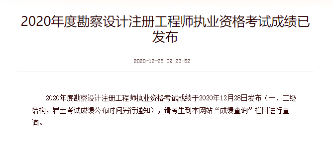 【2020年四川勘察設(shè)計注冊工程師考試成績查詢?nèi)肟?/FONT>】