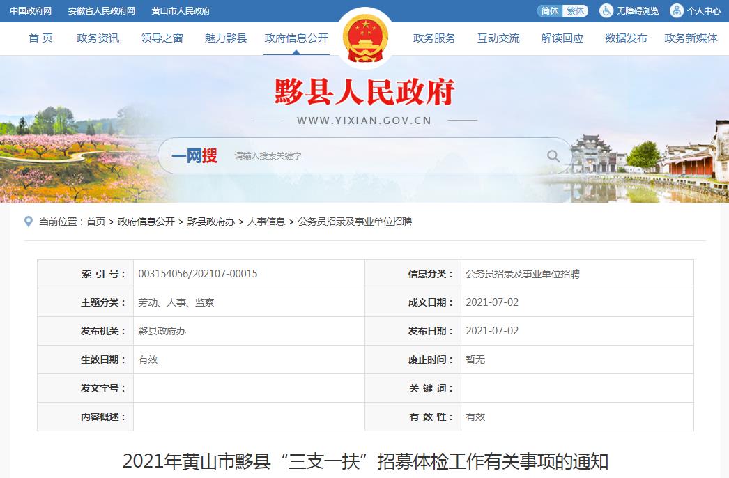 2021年安徽三支一扶考試已進入體檢階段,為了讓考生及時獲悉相關事宜,今天為您精心整理了2021年安徽黃山市黟縣三支一扶招募體檢工作通知,供各位考生的查閱,更多三支一扶考試方面的資訊,請關注的更新。